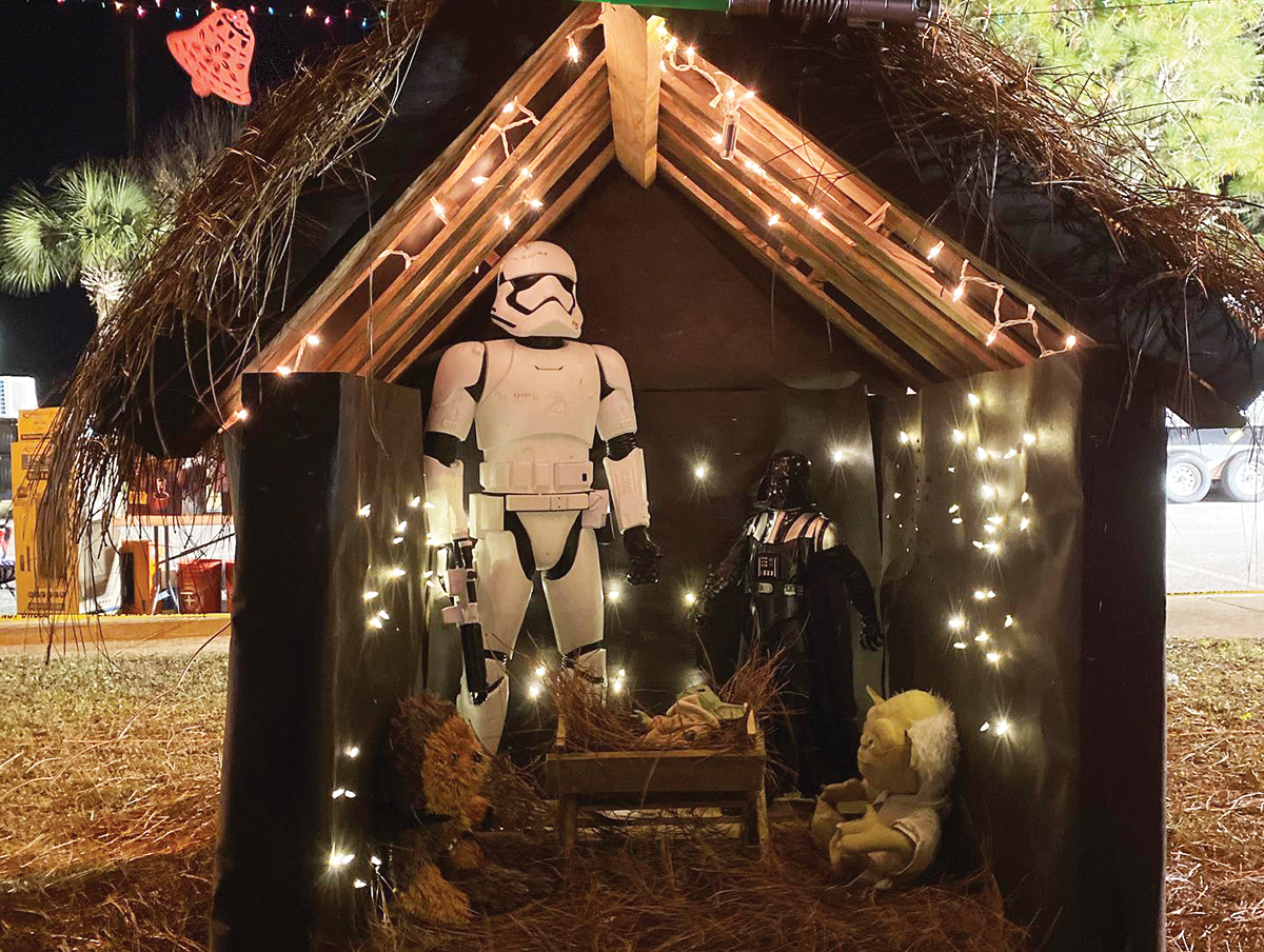 Located at the corner of Bluewater Blvd. and Antiqua Way in Bluewater Bay, the shows loop every 30 minutes starting at 6 p.m., with the last show starting at 9:30 p.m. Sun.-Thurs., and 10:30 p.m. Fri., Sat. and holiday eves. Now in its 16th year, the free show consists of Christmas lights and other themed display elements, all under computer control and synchronized to music and usually is lighted and available to the public through the first week of January. All donations this year will support Healing Paws for Warriors. The show is the technical and creative wizardry of Jeff Werner, the “Northwest Florida Geek” and Wendy Werner, his “spouse peripheral.” FaceBook.com/GeekLightsOnTheCorner. geeklights@gmail.com