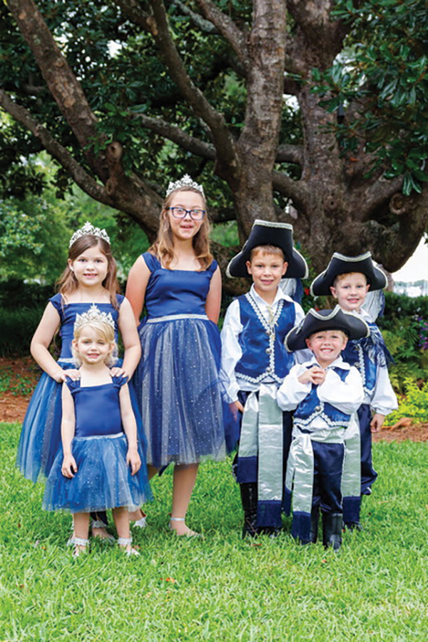 In addition, rising high school seniors are invited to take part as Princesses and Privateers. And younger children are encouraged to serve as Children of the Court. “This year, we have 11 Children of the Court ranging in ages from one to nine years old.” Gwin’s two grown children served as Princesses in previous years while attending high school.