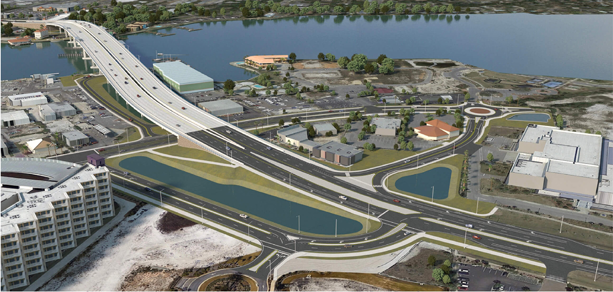 The great news is that it will bypass the existing intersection of Santa Rosa Boulevard with a new landing point just west the convention center. Traffic on Santa Rosa Boulevard will go under the new bridge with access to either a dedicated lane to get to Fort Walton Beach or an access road before the bridge to go to Destin. With additional lane capacity on the bridge, and the removal of the current intersection at Santa Rosa Boulevard, traffic in the area will flow more freely.