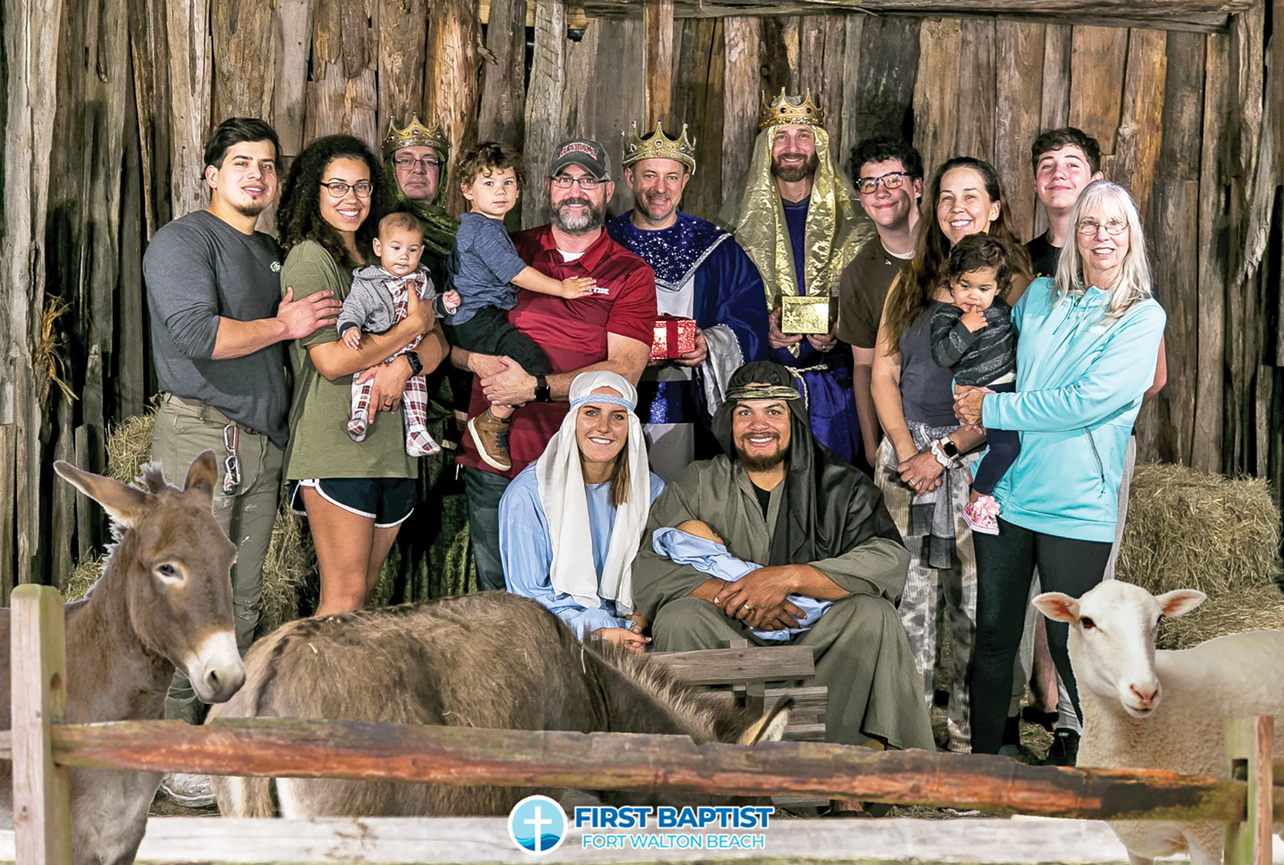 First Baptist Church of Fort Walton Beach will present its 35th Live Nativity celebration from Thursday, December 14th through Wednesday, December 20th. The Live Nativity is open from 6 – 8:30 p.m. each night. It is the second time only in several years that this free, Live Nativity will be open on a Sunday evening, a gift to the community from First Baptist Church.