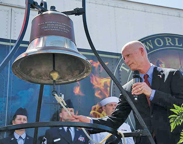On Sept. 11, 2014, the Freedom Bell that hangs in the Veterans Tribute Tower at Beal Memorial Cemetery was dedicated and rung for the first time by Navy Veteran, Governor Rick Scott. The three-day casting process was accomplished locally at Uptown Station by the Verdin Foundry from Cincinnati, Ohio. The date chosen for the bell casting was in recognition of those who were lost on Sept. 11, 2001.