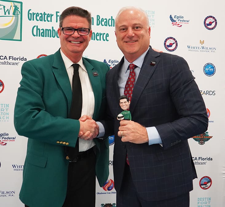 2024 Chairman of the Board, Stephen Perkins of Warren Averett, delivered an inspiring farewell address, and passed the gavel to Gordon King of Okaloosa Gas, the incoming 2025 Chairman of the Board. King commented, “Okaloosa Gas has been a leader in Northwest Florida since 1953. I am honored to be just the second Okaloosa Gas Chairman to be selected as Chair of the Greater Fort Walton Beach Board of Directors (Fred Pryor was first 1984). My goal will be to do all we can to promote the quality of life in Okaloosa County.”