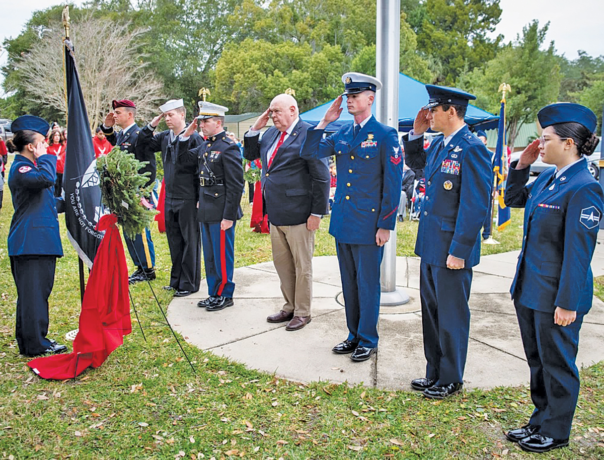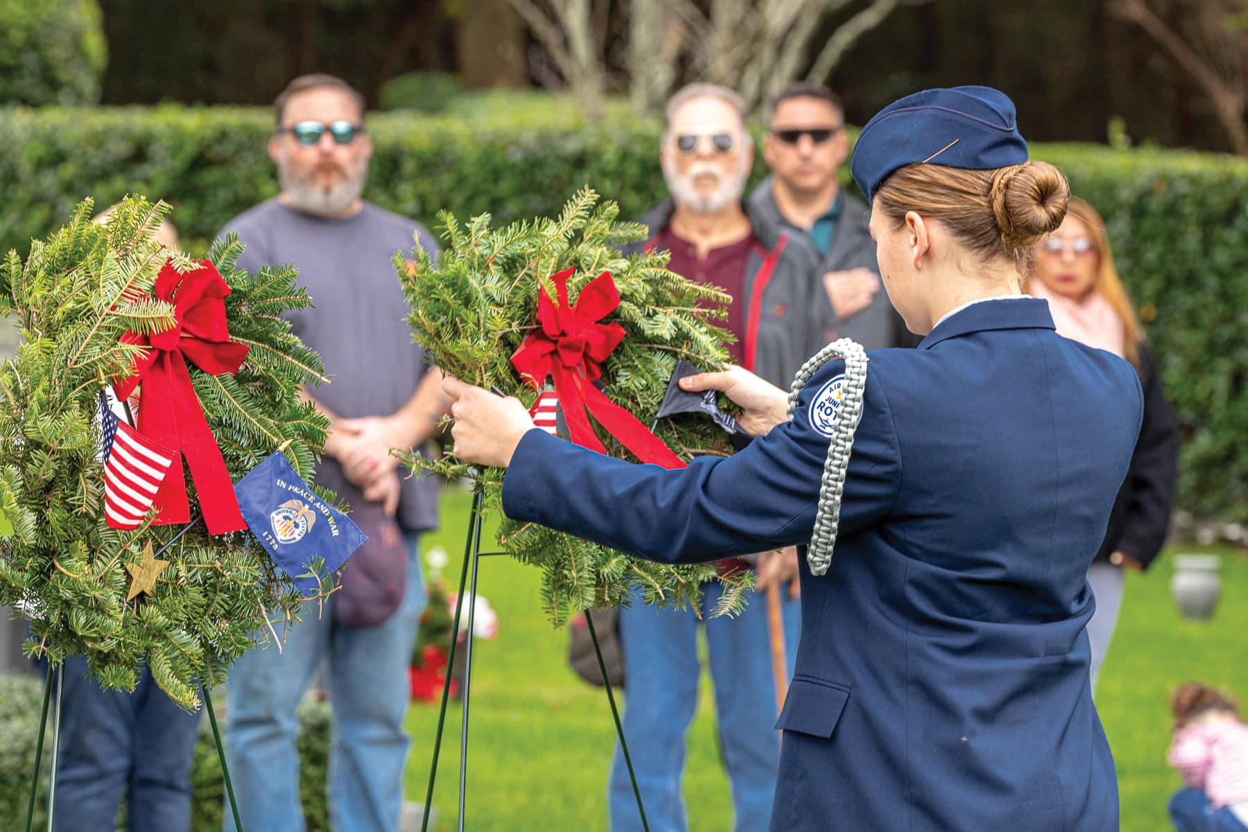 In Destin, the American Legion Auxiliary Unit 296 and community volunteers will place wreaths at every veteran’s grave in both the Destin Memorial and Marler cemeteries. “We remember the fallen, honor those who serve and teach about freedom,” says Corlene Zieglar, president, American Legion Auxiliary Unit 296. “No matter the weather, they come—all ages, from all walks of life to honor the lives of the veterans who served. Parents bring their children so they can learn about service and sacrifice.”