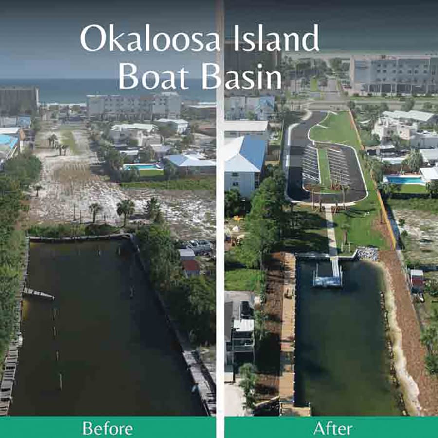 Boat Basin Before And AfterRoughly five years ago, Commissioner Carolyn Ketchel learned about the boat basin and that it needed to be refurbished. Okaloosa County tourism and a $150,000 boating improvement grant from the Florida Fish and Wildlife Conservation Commission (FWC) helped fund the new ADA-compliant water access point on the Santa Rosa Sound area on Okaloosa Island.