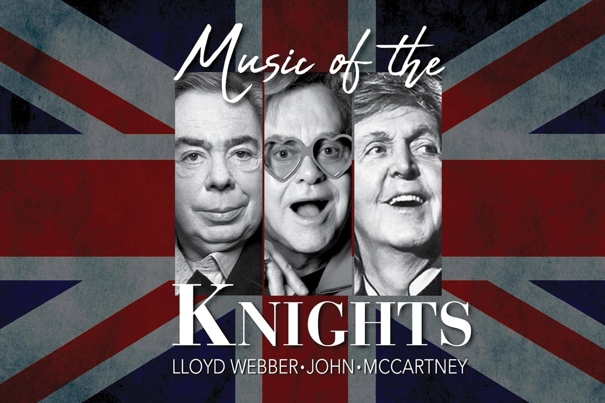 Sir Andrew Lloyd Webber, Sir Elton John, and Sir Paul McCartney, each knighted by the Queen of England, are three of the world’s most successful songwriters. From Broadway to the top of the pop charts, these musical geniuses each created an incredible individual musical legacy. Music of the Knights honors their lasting musical influence with hits like Memory, Yesterday, Don’t Cry for Me, Argentina, Can You Feel the Love Tonight, Circle of Life, Hey Jude, The Phantom of the Opera, and more.