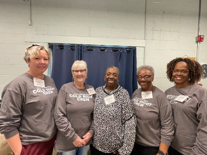 All Cold Night volunteers serve at One Hopeful Place, helping prepare spaces, welcome guests, and ensure safety throughout the night.