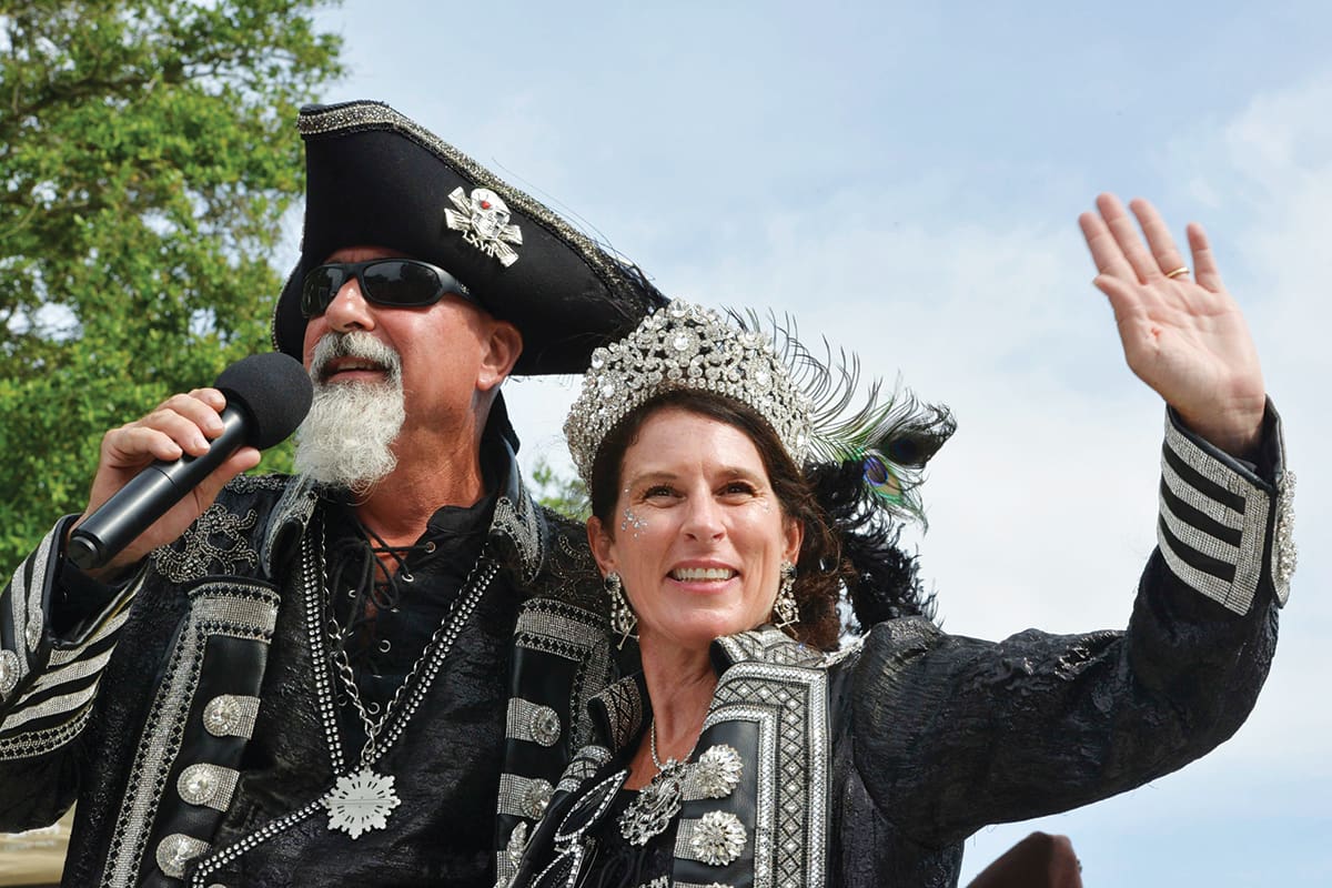 This year’s new “Captain Billy,” Bill Kilpatrick, takes the helm as Captain Billy Bowlegs LXVIII and is joined by the 68th Queen of Bowlegs Sharen Burt, First Mate and Mistress Brad and Krista Bowman along with their lackeys Christina Kilpatrick and John Burt and the Captain’s Honor Guard krewe.