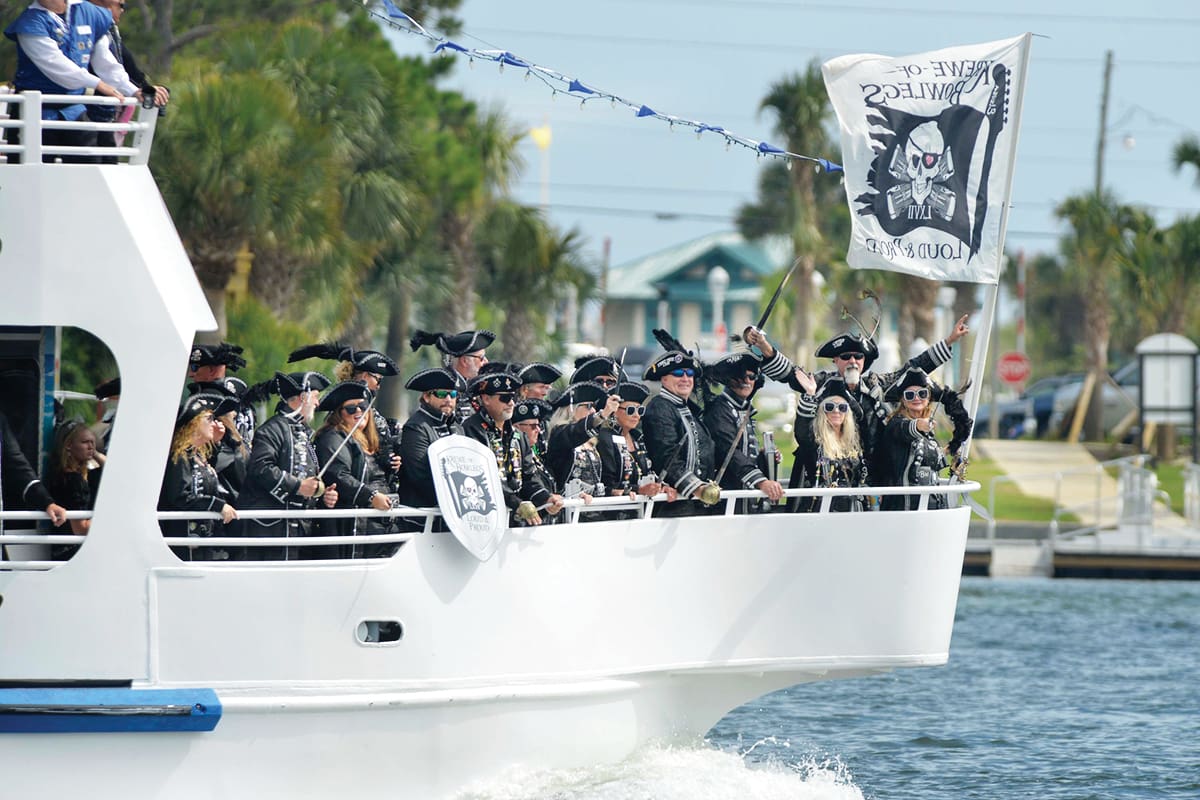In between the Skirmish and Torchlight Parade, there’s all sorts of grub and grog, from ice cream to seafood. There will be live music and entertainment, fireworks a plenty and vendors showcasing lots of pirate booty and the like. For scallywags young and old, there’s arts and crafts booths, food, refreshments and bouncy houses. Our high seas are filled with hundreds of boats lining the mile-long sandbar off Fort Walton Beach Landing, where a melting pot of people will make their way to pillage, plunder and drink rum.
